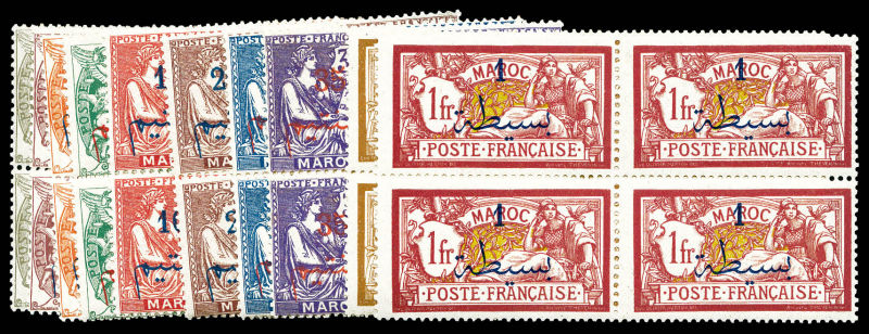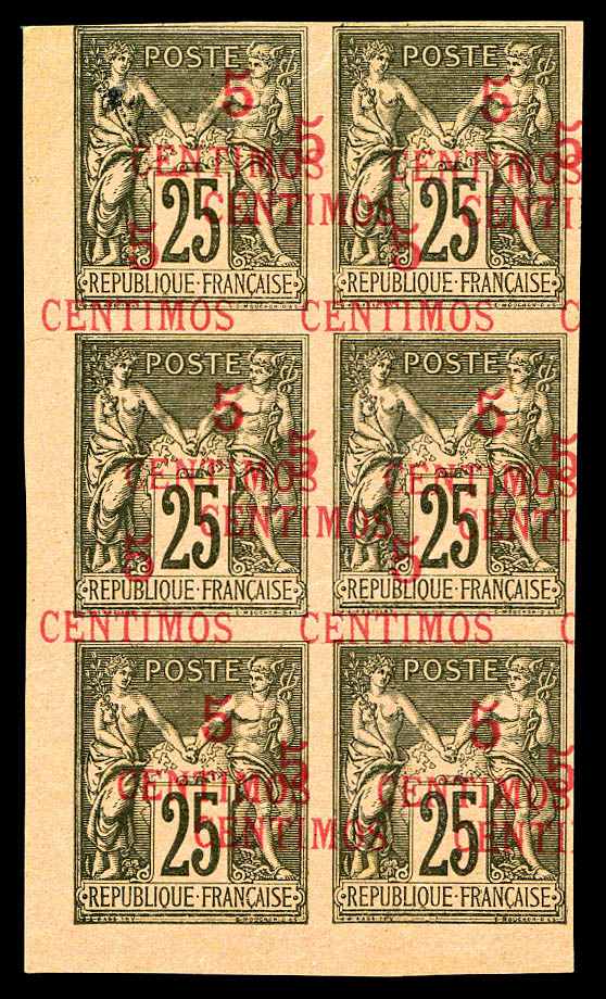 25 noir sur rose non dentelé, triple surcharge en bloc de 6 exemplaires coin de feuille, toujours sans gomme. SUP (certificat) Qualité: (*) Cote: 3780 euros (Image)