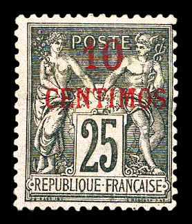 10c rose avec surcharge renversée, UN DES TIMBRES LES PLUS RARES DES COLONIES FRANCAISES, SUPERBE (Certificats) Qualité: * Cote: 31500 euros (Image) (image2)