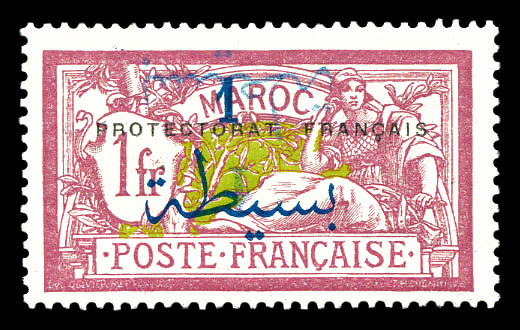 1f lie de vin et olive: double surcharge dont une renversée. TB (signé Brun/certificat) Qualité: * Cote: 350 euros (Image)