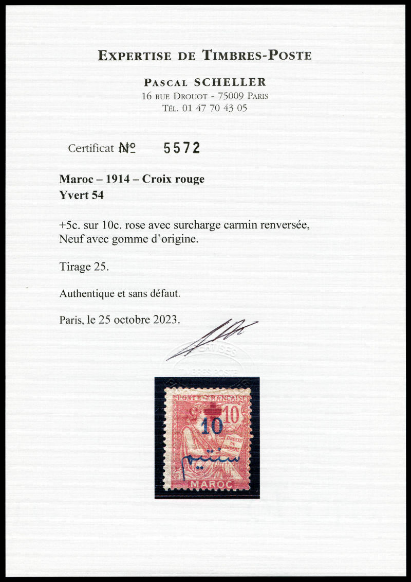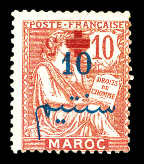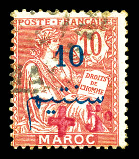 10c, croix rouge d'Oujda. SUP. R. (signé Calves/certificat) Qualité: Oblitéré Cote: 1900 euros (Image)