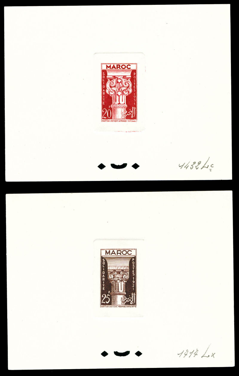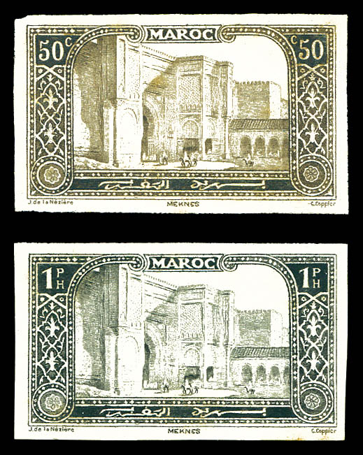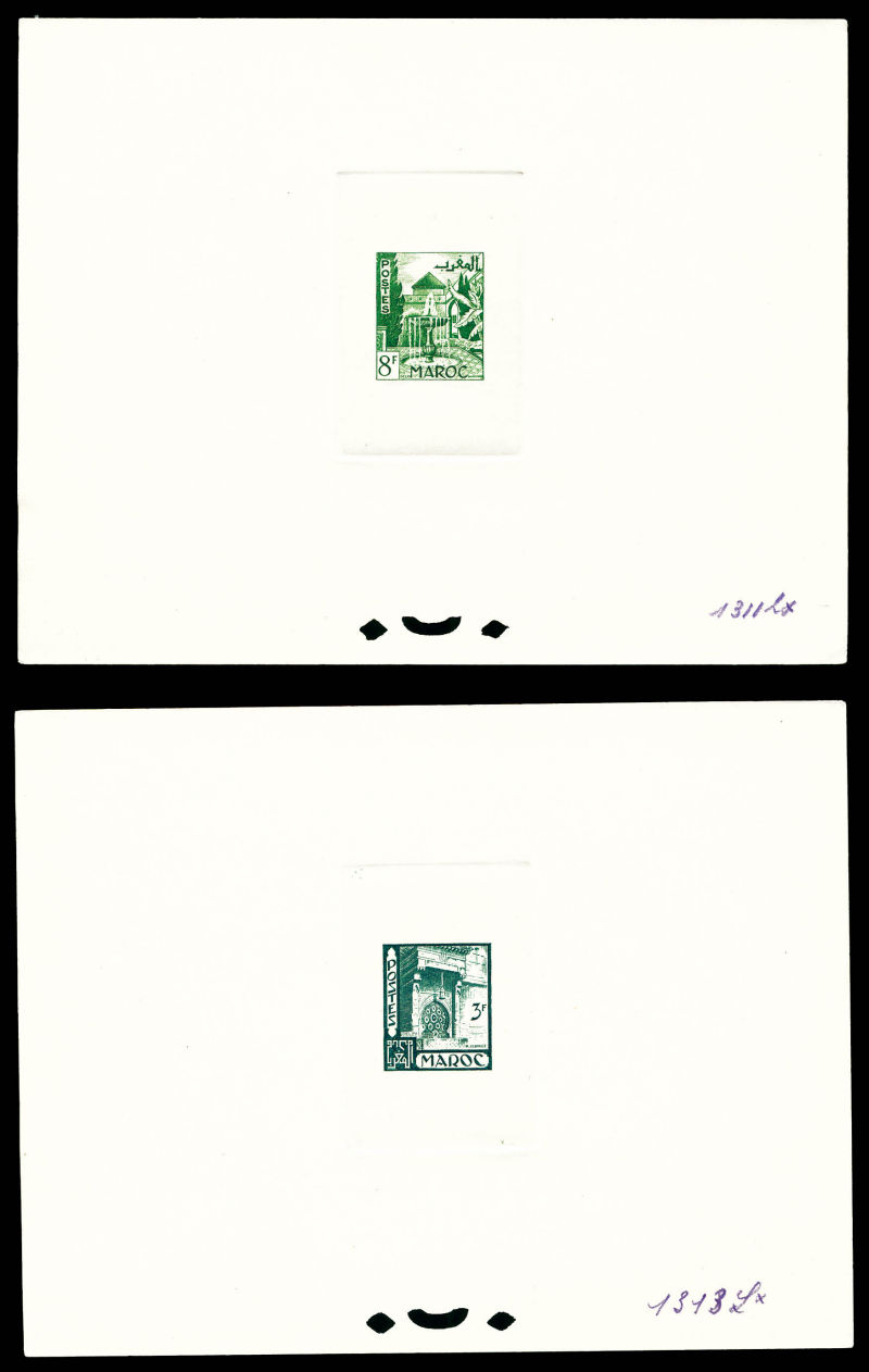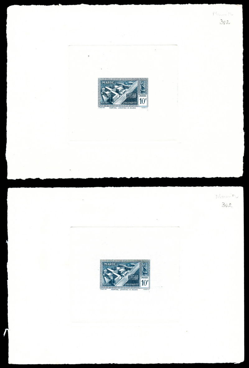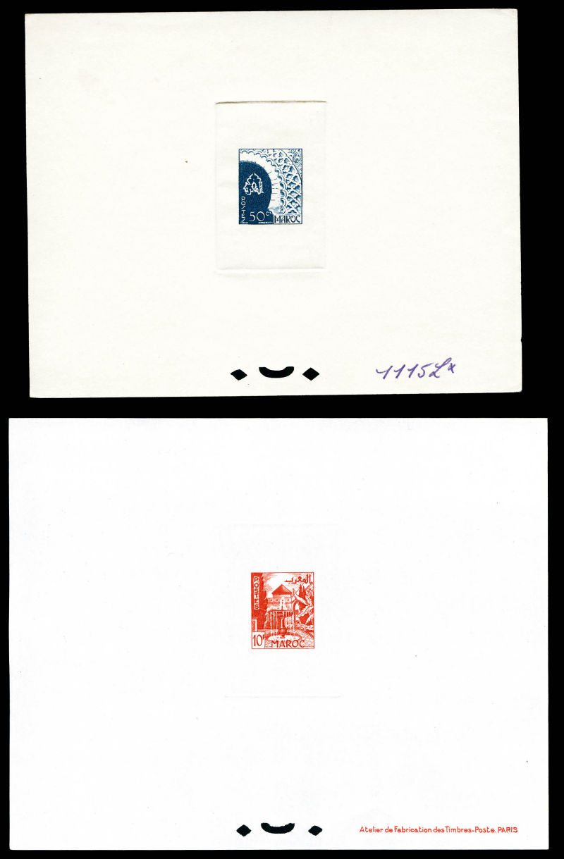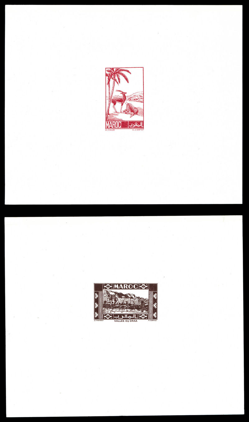 Vallée du Todra: les 2 valeurs en épreuves de luxe + 2 épreuves de couleurs avec annotations du 50f (n°293). TB Qualité: (*) (Image) (image2)