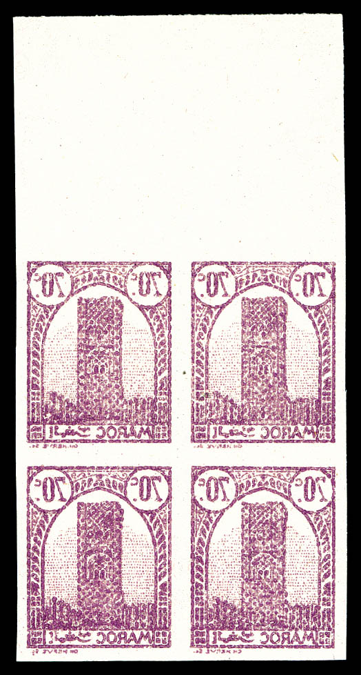 Hassan, 70c lilas non dentelé, impression recto-verso en bloc de quatre bdf. TTB (certificat) Qualité: ** Cote: 680 euros (Image) (image2)