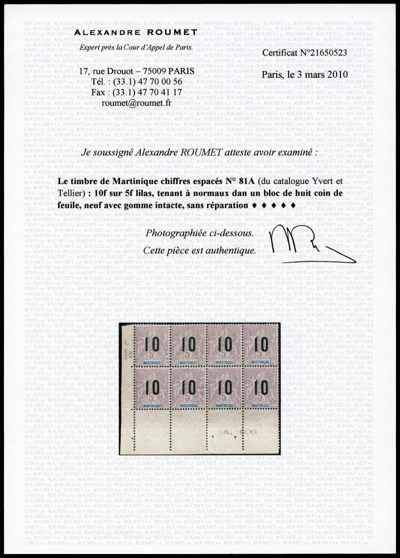 sur 5f: chiffres espacés tenant à normaux en bloc de 8 cdf. TB (certificat) Qualité: ** Cote: 547 euros (Image) (image2)