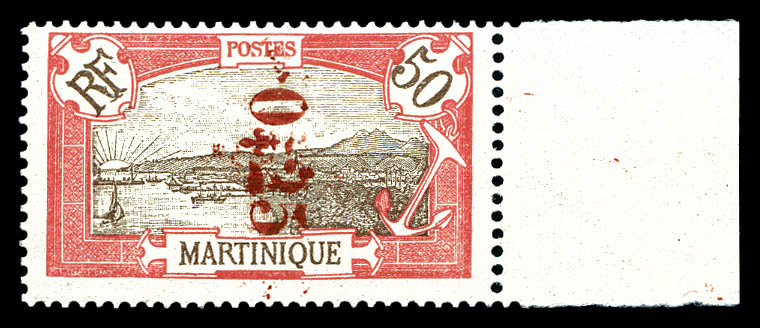sur 50c rouge, bdf, variété surcharge mal imprimée, SUP, R (certificat) Qualité: ** Cote: 665 euros (Image)
