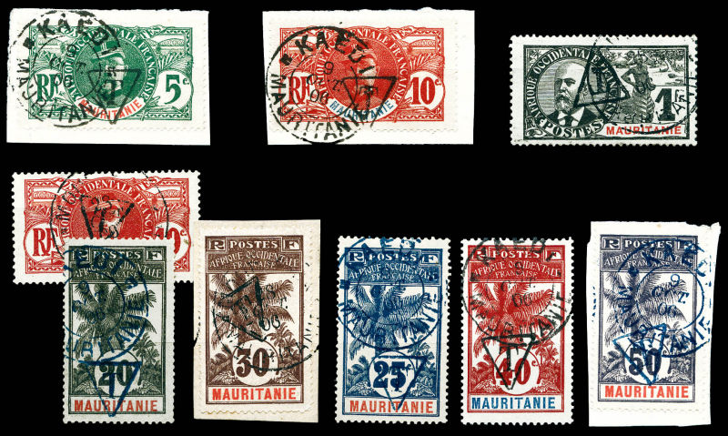 3554 imageN°1/8, La série de 8 valeurs oblitérés Kaedi (sauf n°5 et 8 obl. Moudjeria), plus un autre n°2 obl. Moudjeria, TTB. R. (signés/certificat) Qualité: Oblitéré Cote: 4115 euros (Image)