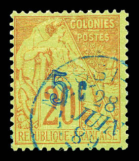 20c brique sur vert, 2ème tirage surcharge outremer obl càd du 20.8.89. SUP. R.R (signéBrun/Calves/certificat) Qualité: Oblitéré Cote: 1650 euros (Image)