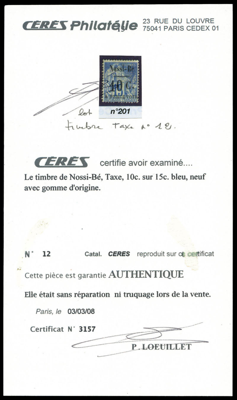 10c, 3ème tirage surcharge indigo. TTB (signé Brun/certificat) Qualité: Oblitéré Cote: 2300 euros (Image)