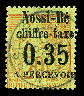 rouge-orange 1er tirage bleu pâle, bloc de quatre bord de feuille oblitéré càd de Nossi bé le 30 mai 1889. SUPERBE. R.R. (certificats) Qualité: Oblitéré Cote: 10500 euros