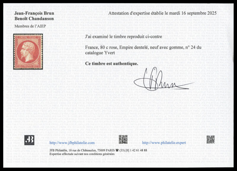 350 imageN°24, 80c rose, fraîcheur postale, SUP (signé Brun/certificats) Qualité: ** (Image) (image2) (All Images)