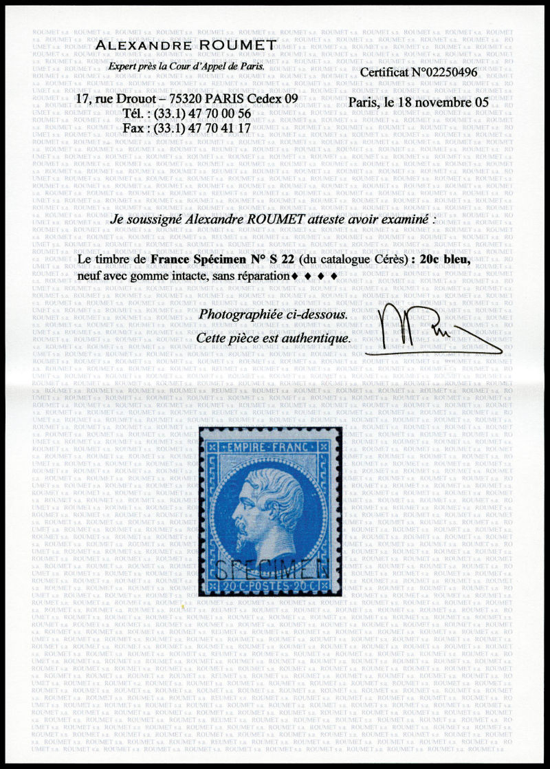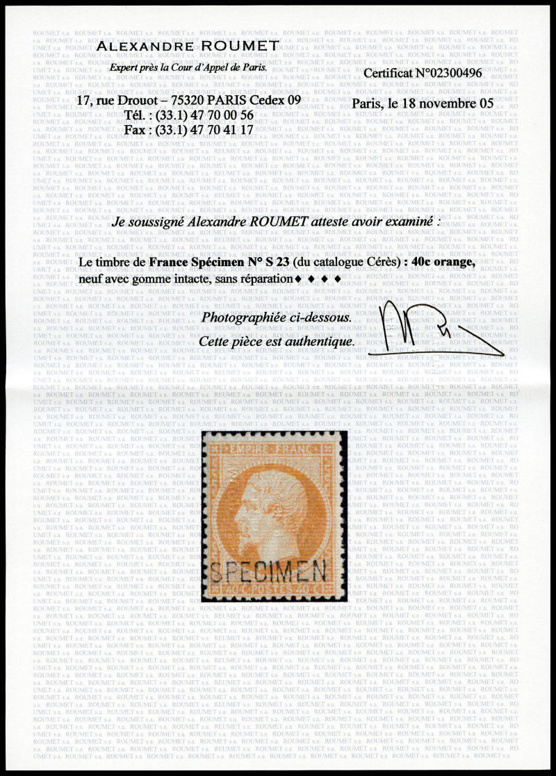 348 imageN°23d, 40c orange surchargé 'SPECIMEN', infime défaut de gomme, TB (certificat) Qualité: ** (Image)