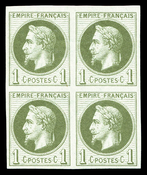 360 imageN°25c, Rothschild, 1c olive impression fine non dentelé, bloc de quatre, fraîcheur postale. SUP. R.R. (signé Calves/certificat) Qualité: * Cote: 9000 euros (Image)
