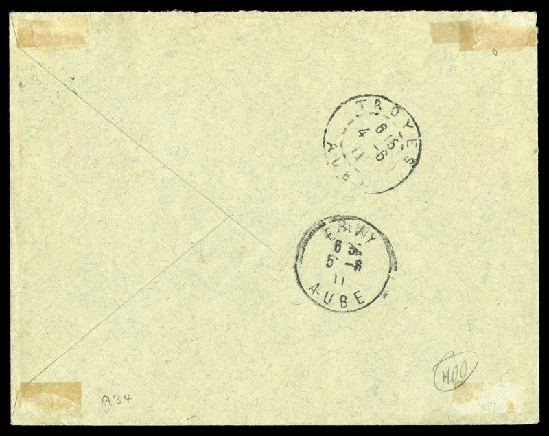 bistre et rouge obl càd du 27 avril 1911 seul sur lettre recommandée de NOUMEA pour Evry. TTB. R. (signé Scheller/certificat) Qualité: Oblitéré (Image) (image2)
