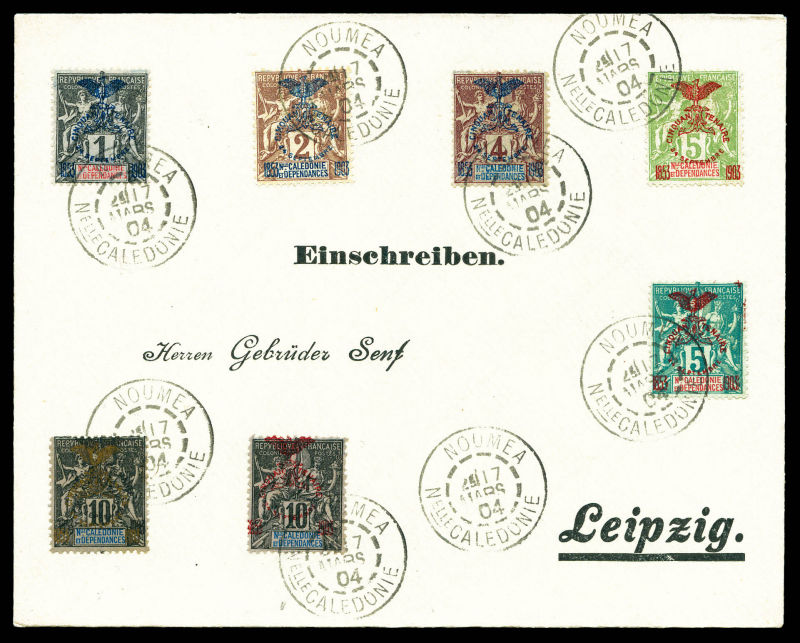 7 valeurs sur lettre de NOUMEA le 17 mars 1904 pour LEIPZIG. TTB Qualité: Oblitéré (Image)