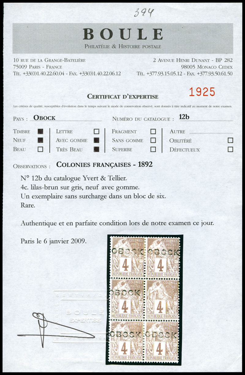 3614 imageN°12c, 4c lilas-brun s gris: Sans surcharge tenant à normaux en bloc de 6. SUP. R. (signé Brun/certificat) Qualité: * Cote: 980 euros (Image) (image2) (All Images)