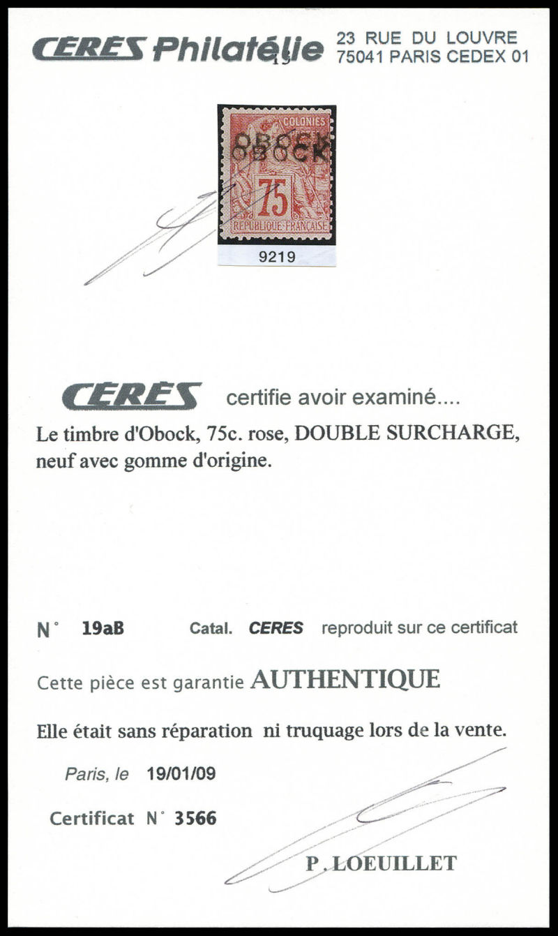 3620 imageN°19b, 75c rose, double surcharge. SUP. R. (certificats) Qualité: * Cote: 1300 euros (Image) (image2) (All Images)