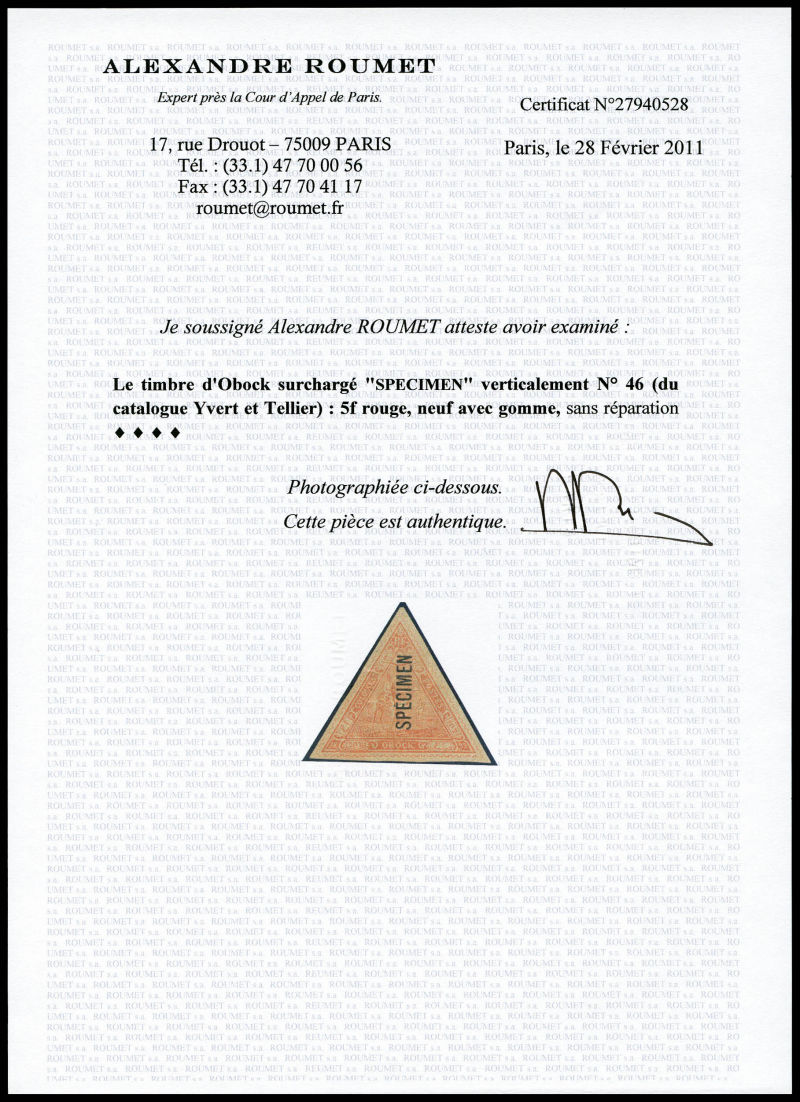 rouge, surcharge Spécimen noire et verticale. TB (certificats) Qualité: * Cote: 475 euros (Image)