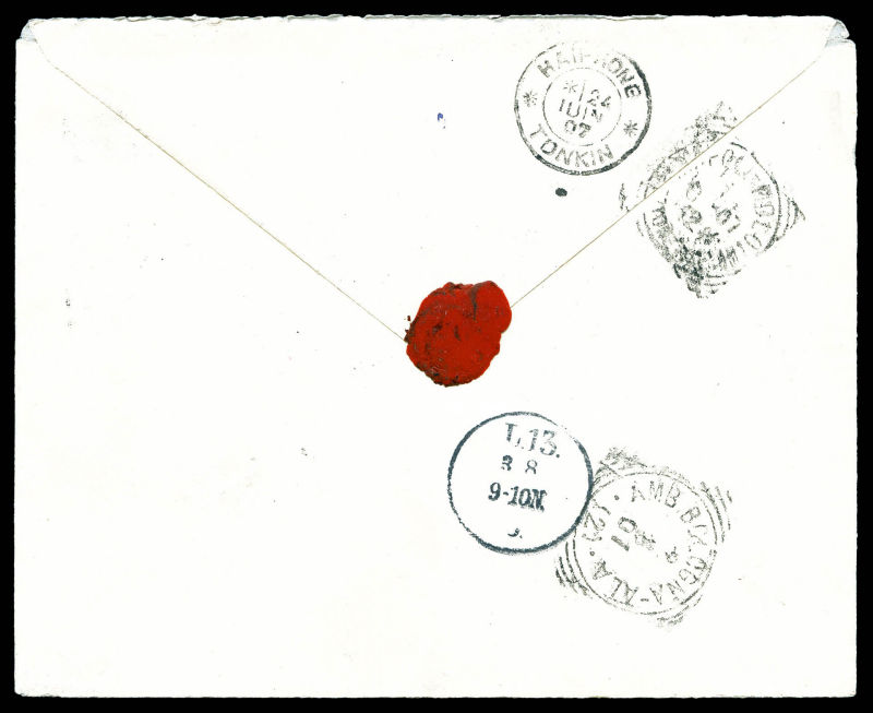 3676 imageN°21, 23, 25 et 27 sur lettre recommandée de PAK-HOI le 25 juin 1907 pour LEIPZIG, au verso cachet de passage et d'arrivée. TTB Qualité: Oblitéré (Image) (image2) (All Images)
