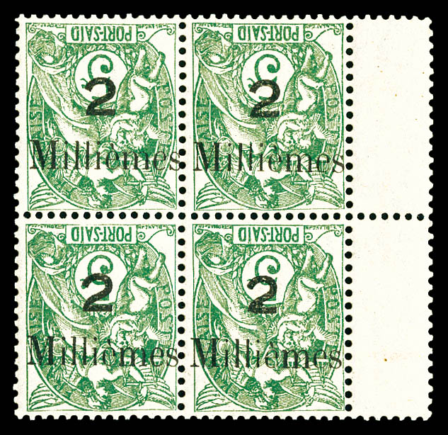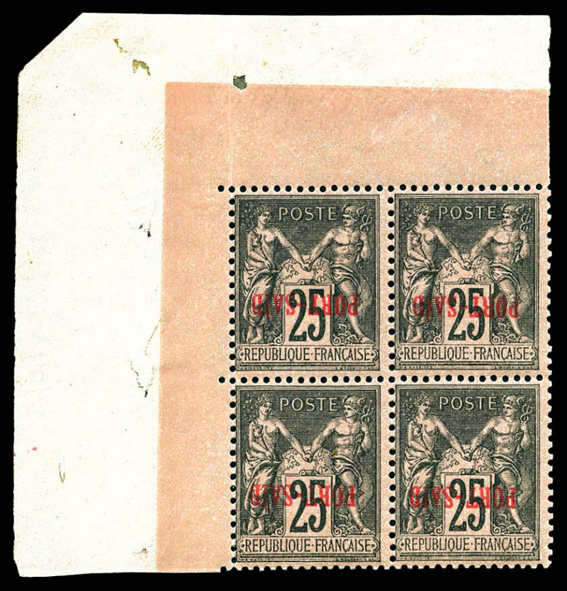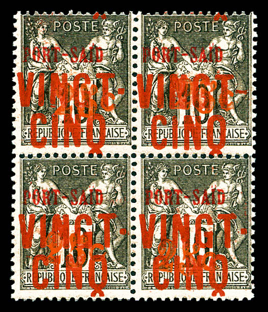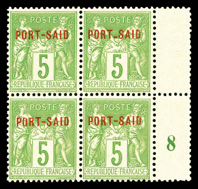 vert-jaune: variété Tiret entre PORT et SAID descendu tenant à normaux en bloc de quatre bdf millésime 3. SUP. R.R. (certificat) Qualité: ** Cote: 8057 euros