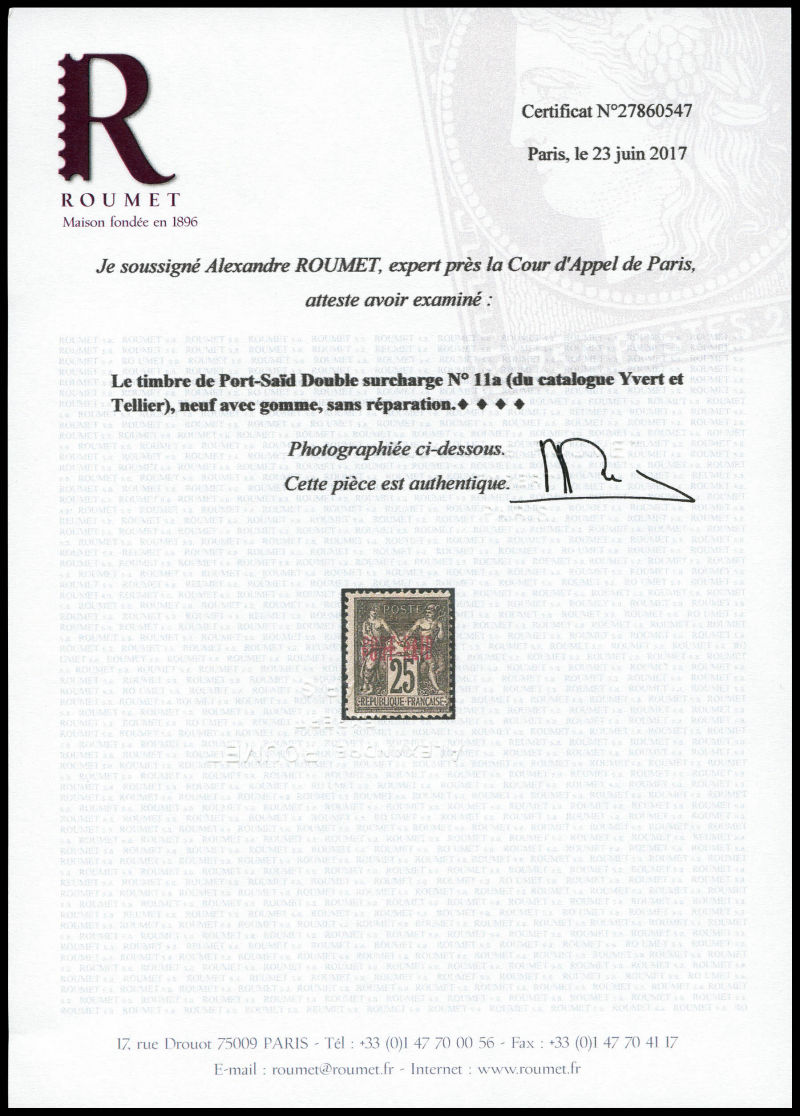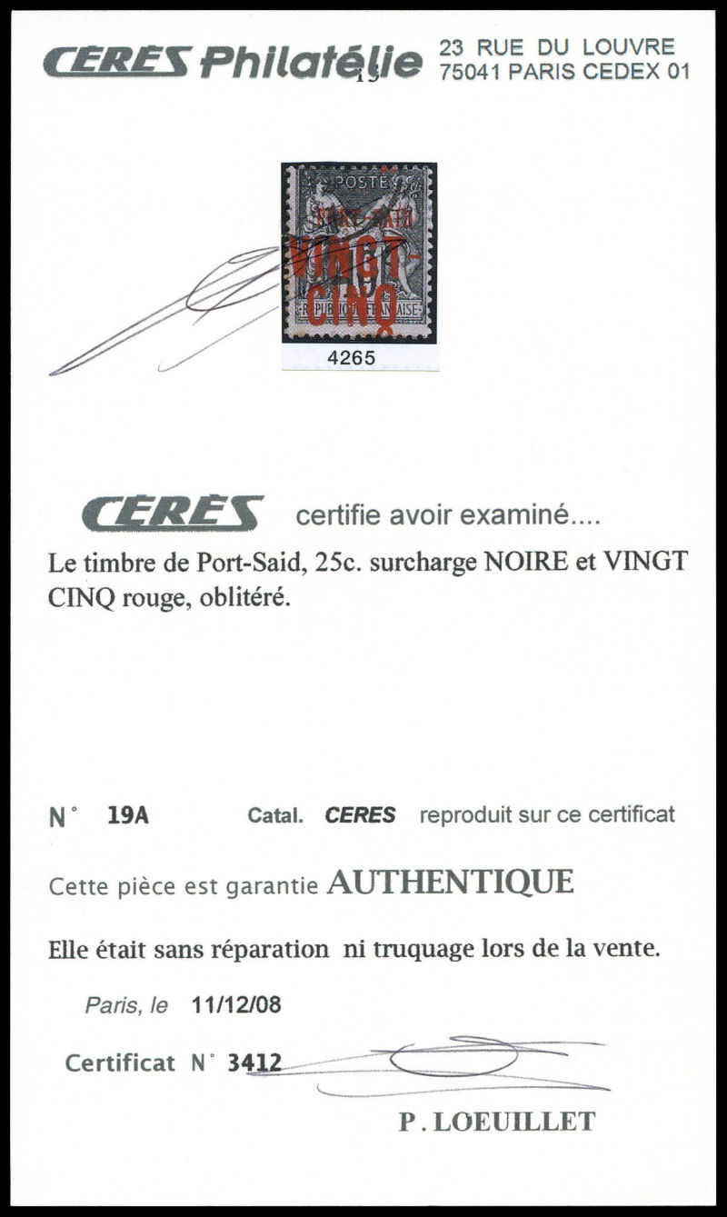 surcharge NOIRE et VINGT CINQ rouge. tirage 150 exemplaires. SUPERBE. R. (certificats) Qualité: Oblitéré Cote: 3250 euros (Image) (image2)