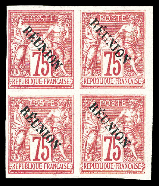 carmin avec accent sur le E en bloc de 4, belles marges. SUPERBE. R.R. signé Brun (certificats) Qualité: * Cote: 8400 euros (Image) (image2)
