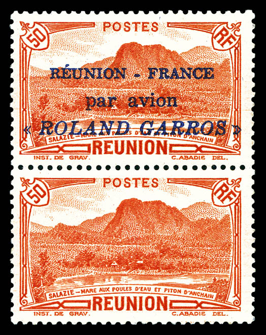 rouge surchargé 'REUNION-France par avion ROLAND GARROS', quasi **, TTB (signé Brun/certificat) Qualité: * Cote: 420 euros (Image)
