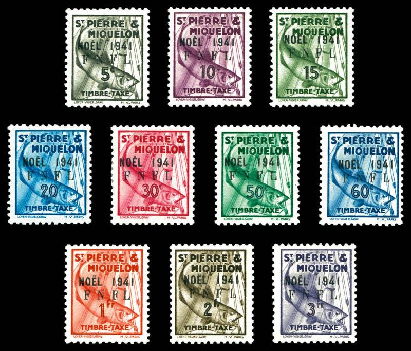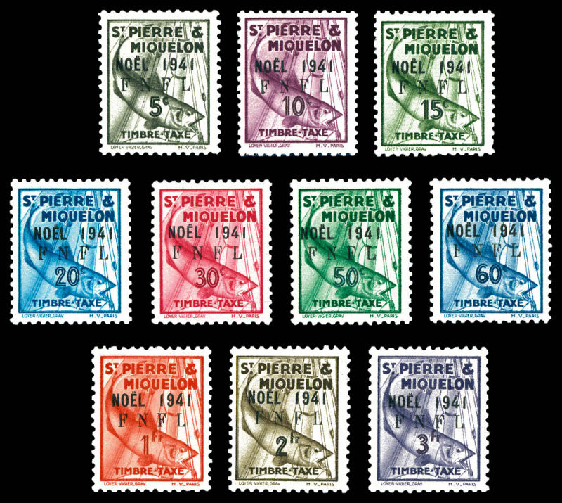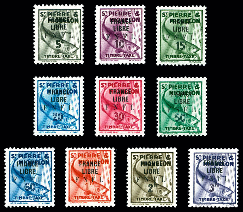 3866 imageN°57/66, Série surchargée 'FRANCE LIBRE F.N.F.L', les 10 valeurs très bon centrage, SUP (signé Brun/certificat) Qualité: ** Cote: 1480 euros (Image)
