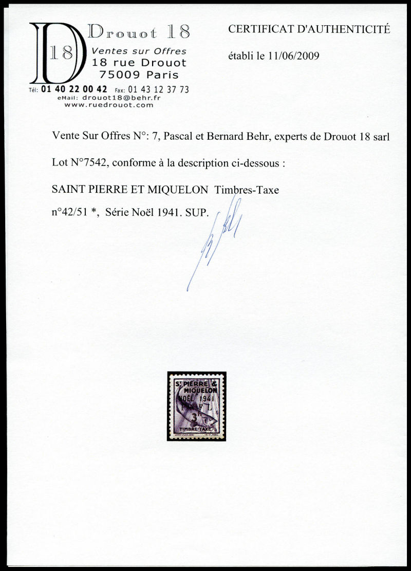 3862 imageN°42/51, Série surchargée 'NOEL 1941 FNFL', SUP (certificat) Qualité: ** Cote: 1230 euros (Image)
