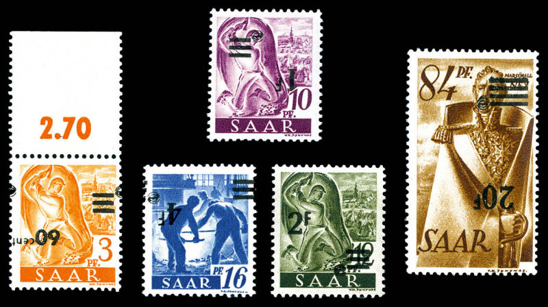 3878 imageN°217b, 218c, 221c et 227b + 219 surcharge recto et verso, les 5 variétés TB Qualité: ** Cote: 380 euros (Image)