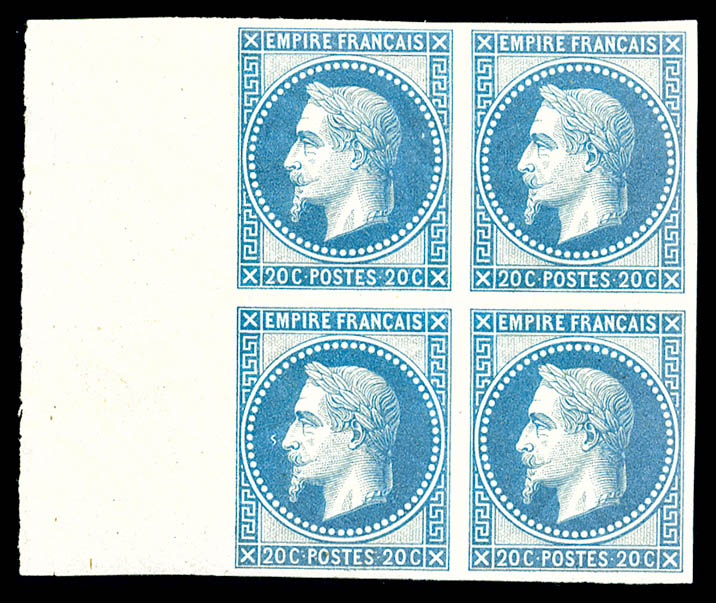 Rothschild, 20c bleu non dentelé en bloc de quatre bdf (2ex*) , SUP (certificat) Qualité: ** (Image)