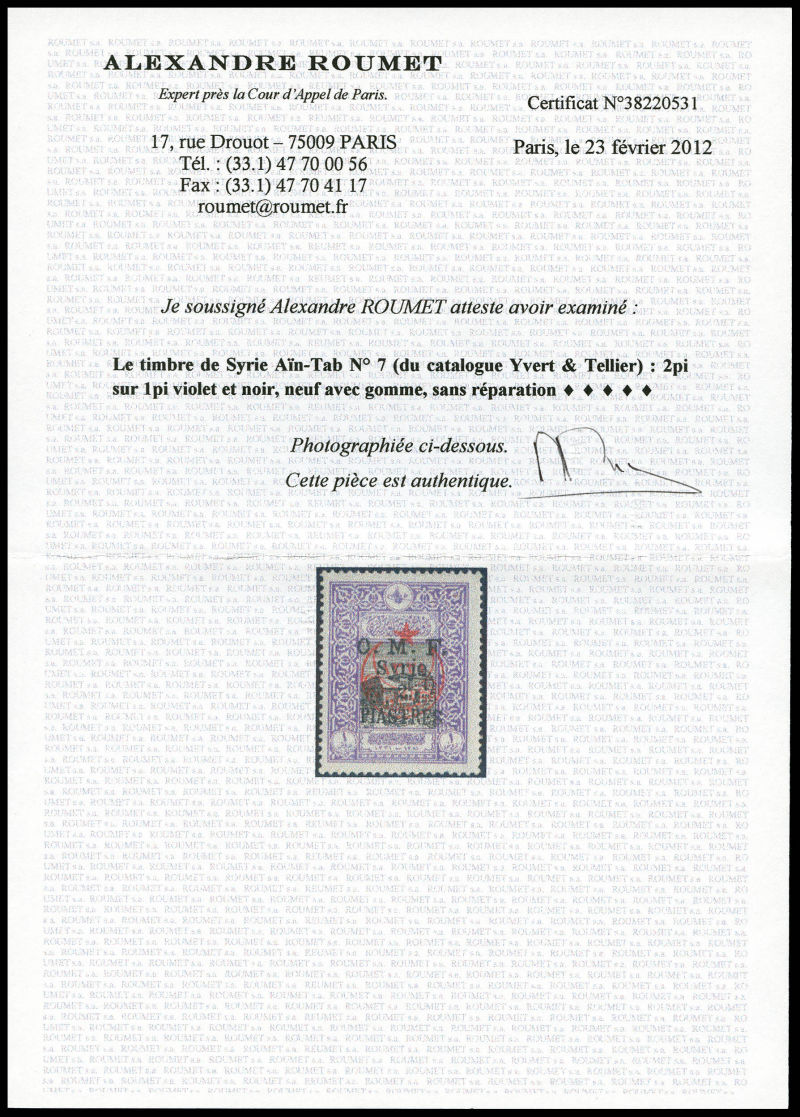 4014 imageN°7, 2 pi sur 1 pi violet et noir. SUPERBE. R. (certificats) Qualité: * Cote: 2000 euros (Image) (image2) (All Images)