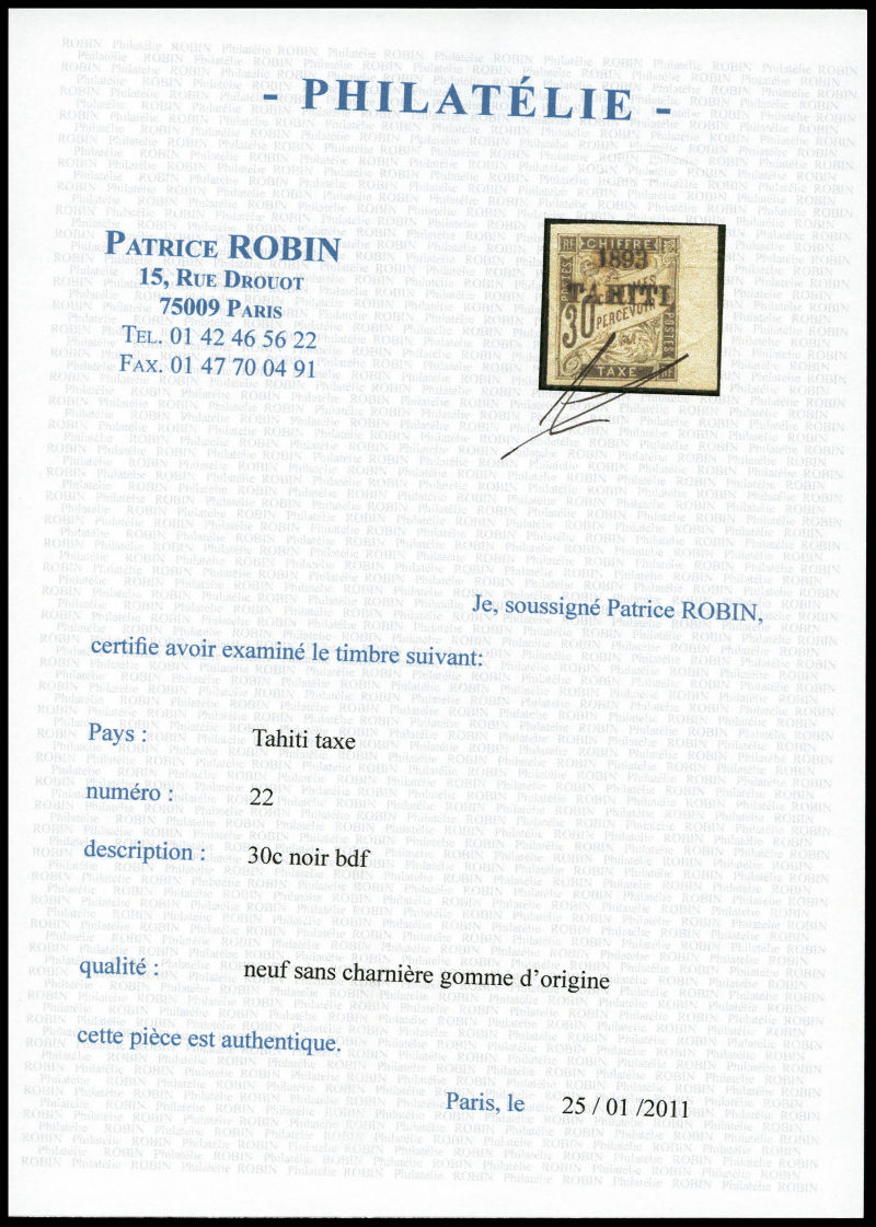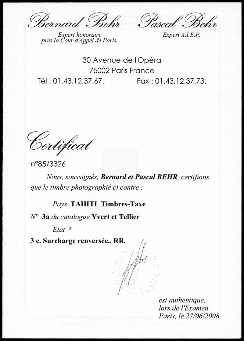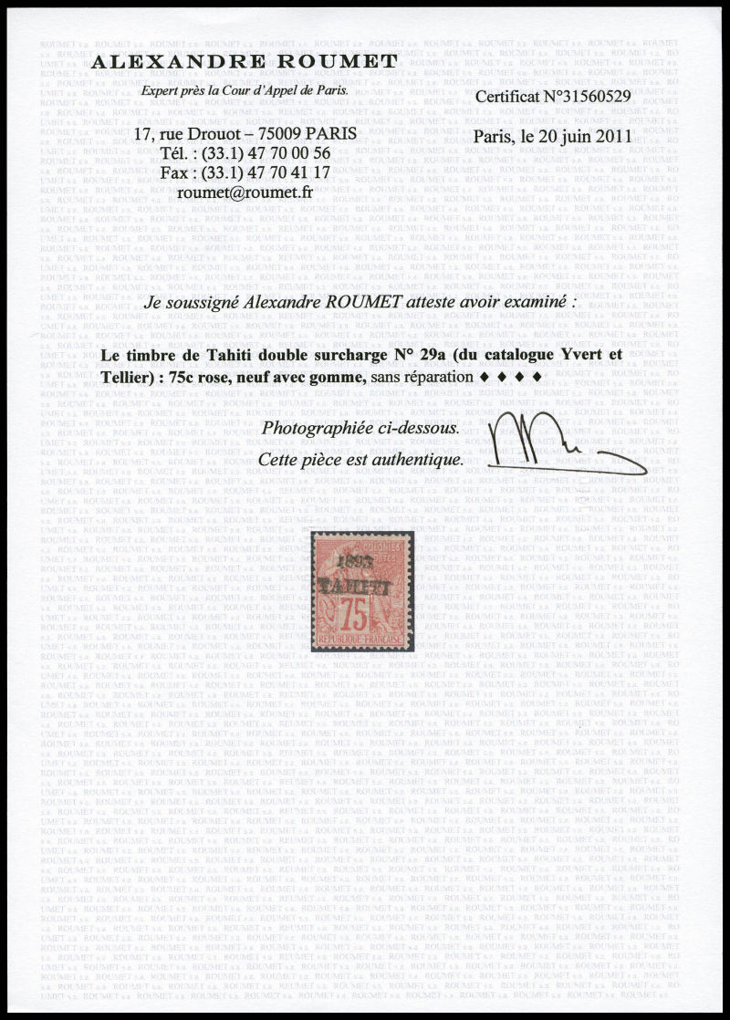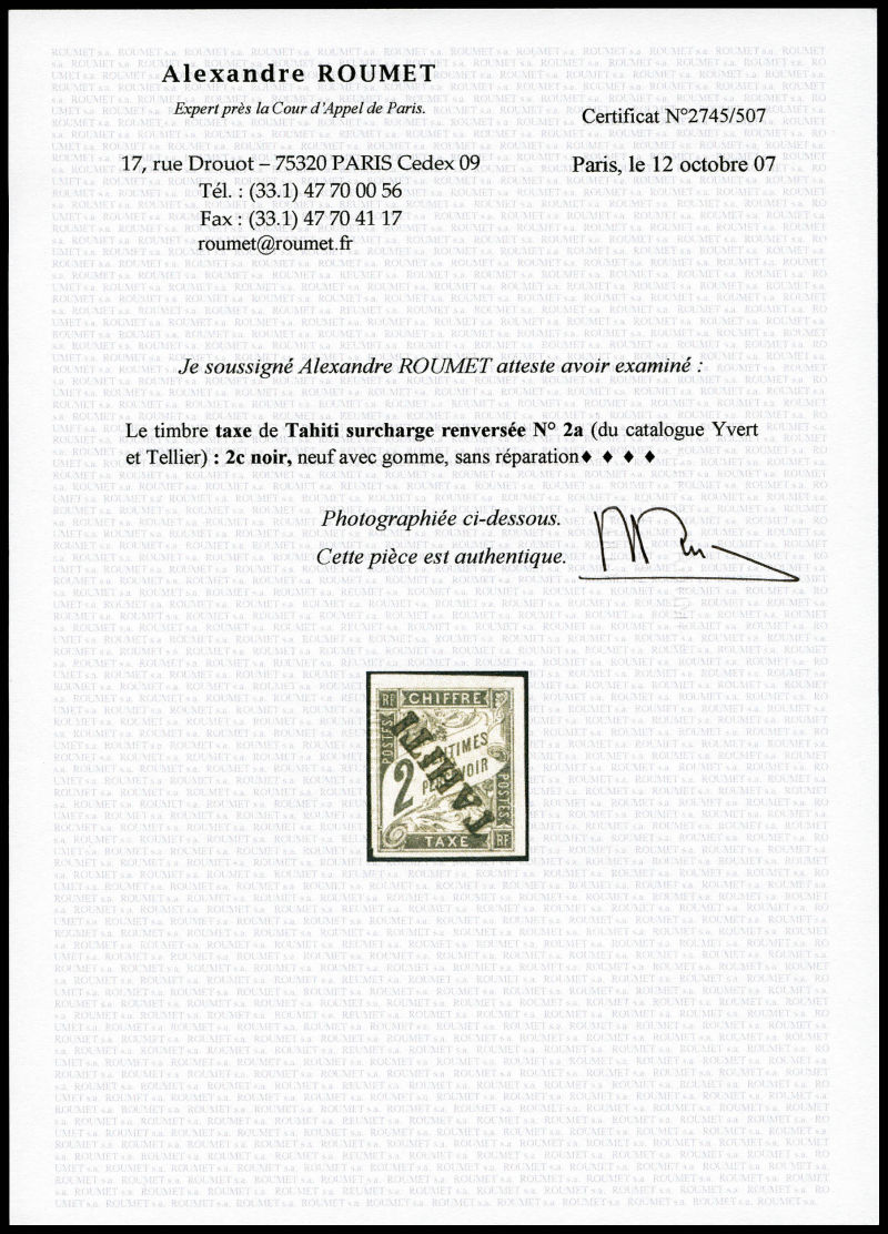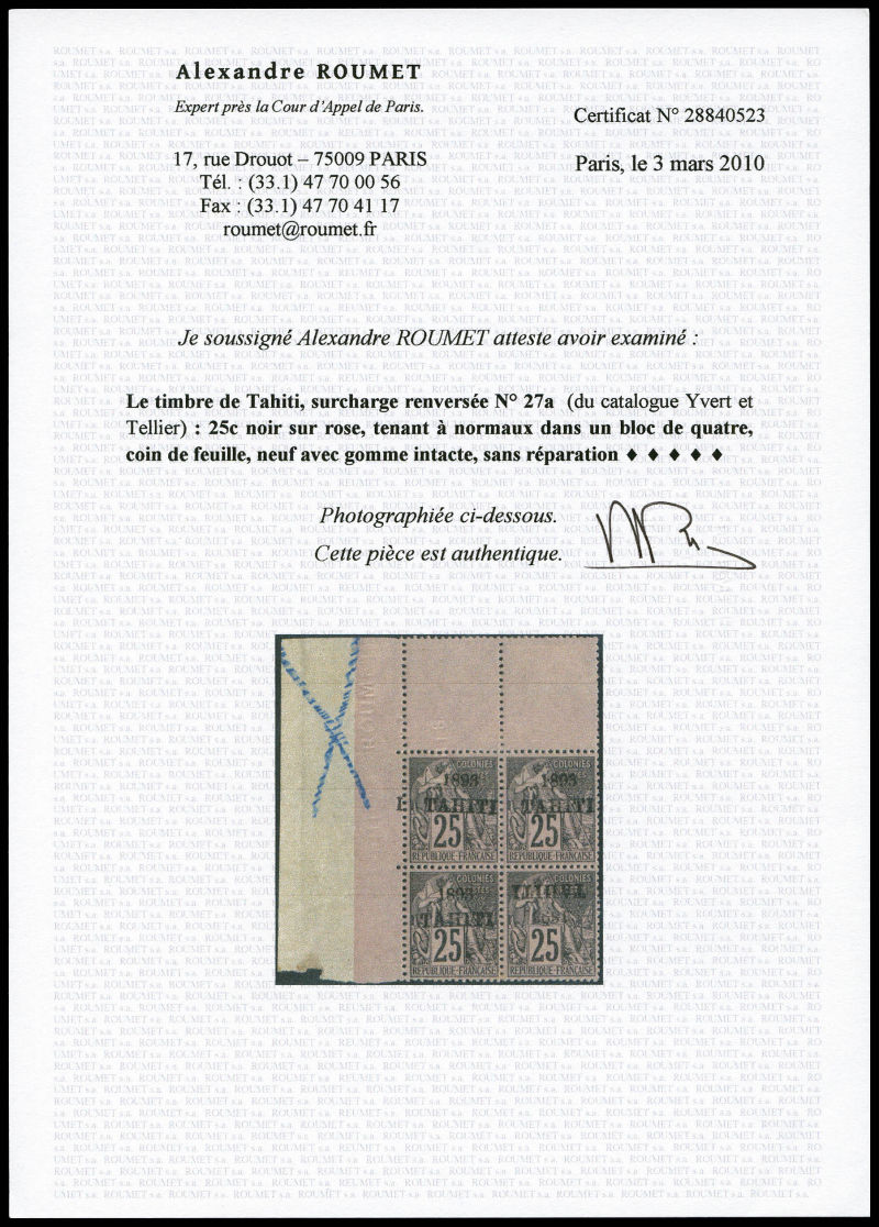 noir, surcharge renversée. SUP. R. (certificats) Qualité: * Cote: 1050 euros (Image) (image2)
