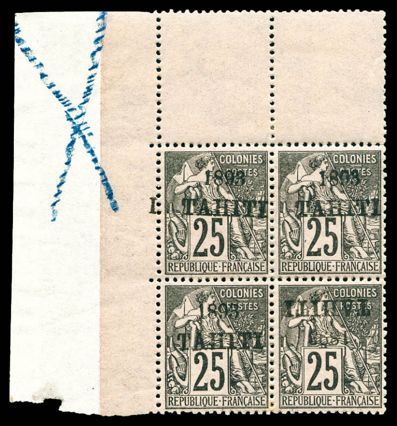 noir sur rose: surcharge renversée tenant à normales en bloc de quatre cdf. SUPERBE. R. (signé Champion/Certificat) Qualité: ** Cote: 1890 euros (Image) (image2)