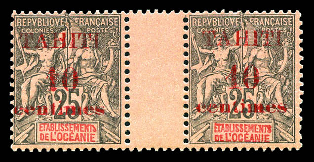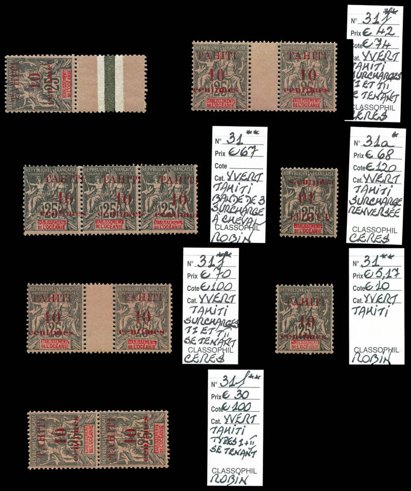 40c: Type I et II du chiffre 1 se tenant dans une bande de 3 avec impression de la surcharge recto-verso. TTB Qualité: ** (Image) (image2)