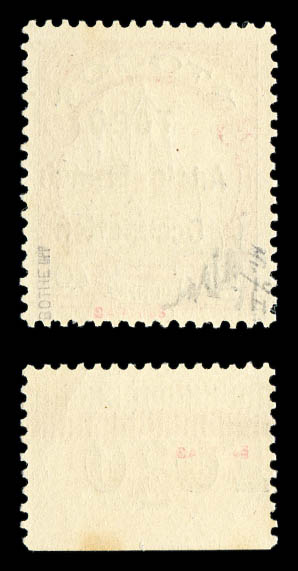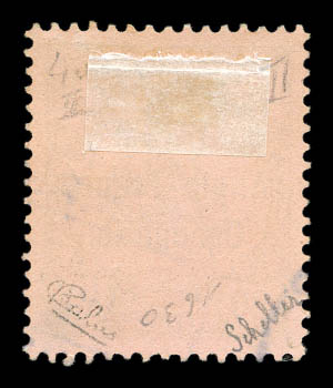rouge et noir sur rose avec surcharge au type II (lignes espacées de 2 mm). Tirage 25 exemplaires. SUPERBE. R.R. (signé Calves/Scheller/certificats) Qualité: Oblitéré Cote: 6000 euros (Image) (image2)