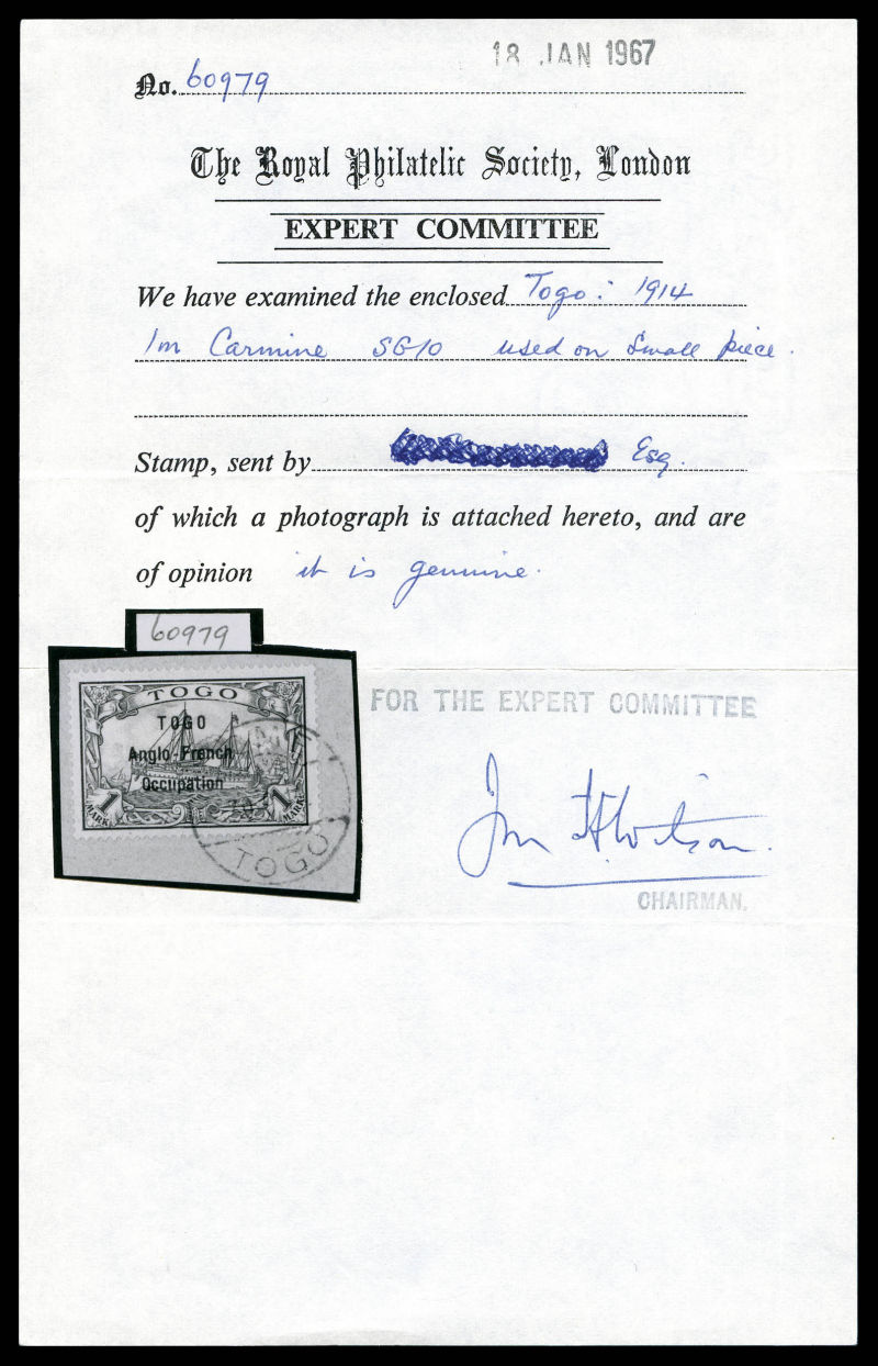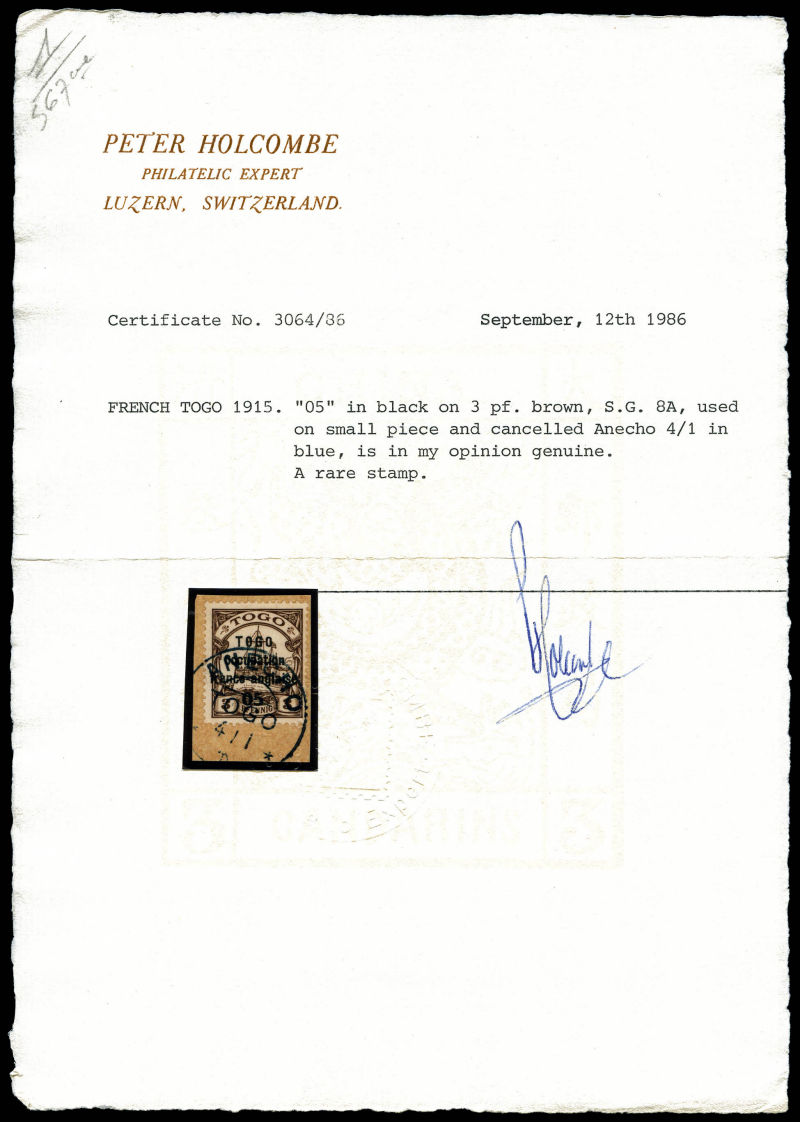 pfennig surchargé 'TOGO Anglo-French Occupation'. SUP (certificats) Qualité: ** Cote: 1650 euros (Image)