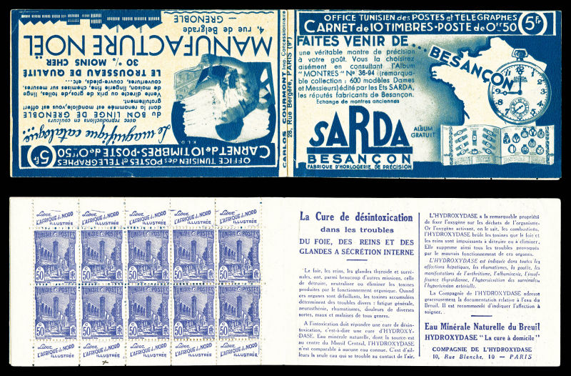 4121 imageN°76-C1, Type Dougga, 10c vert, bloc de 20 timbres provenant d'une feuille de carnets. TB. R. (certificat) Qualité: ** (Image)