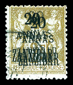 4134 imageN°30a, 20 a sur 2f bistre sur azuré: triple surcharge. SUPERBE. R.R. (signé/certificat) Qualité: Oblitéré Cote: 2550 euros (Image)