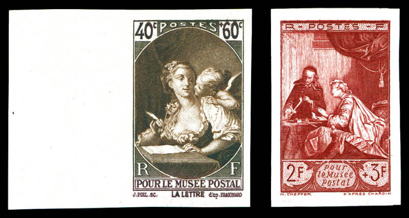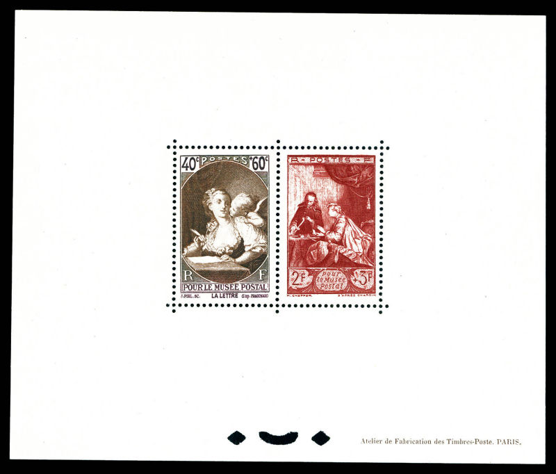4175 imageN°446/753, Blocs Spéciaux: Lettre de Fragonard et musée postal (toujours sans gomme), tirage 12 exemplaires. RARE et SUP (certificat) Qualité: (*) (Image)
