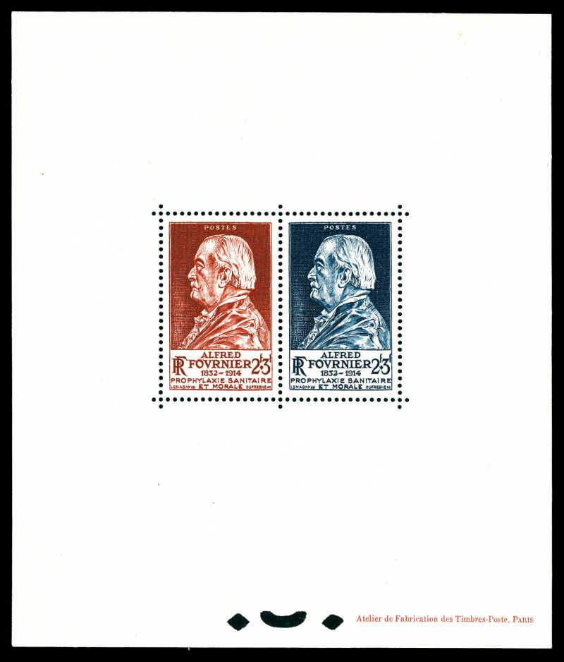 4177 imageBlocs Spéciaux: N°748 et 789, Fournier rouge-brun et bleu-noir, tirage 14 exemplaires. SUP. R (certificat) Qualité: ** (Image)