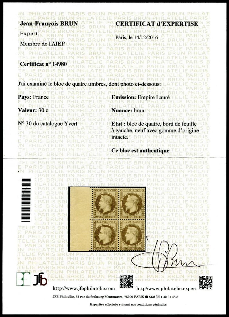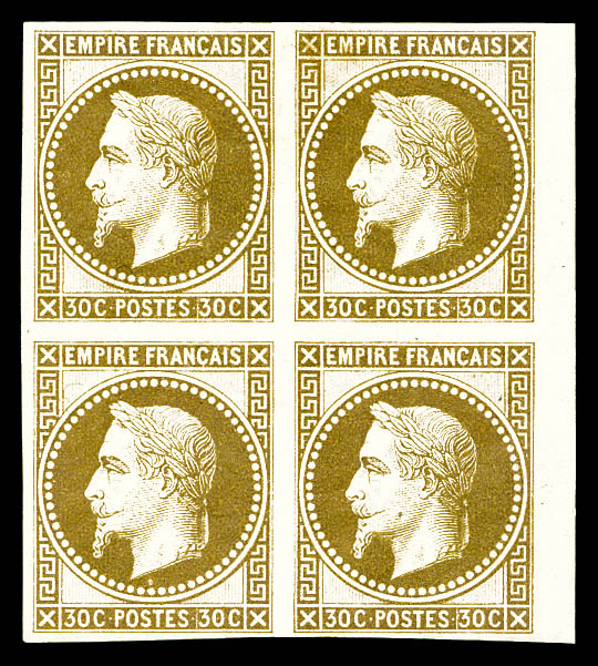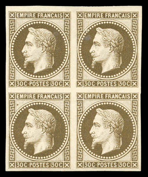 Rothschild, 30c brun non dentelé, bloc de quatre. SUP (signé Calves/certificat) Qualité: * Cote: 1440 euros (Image)