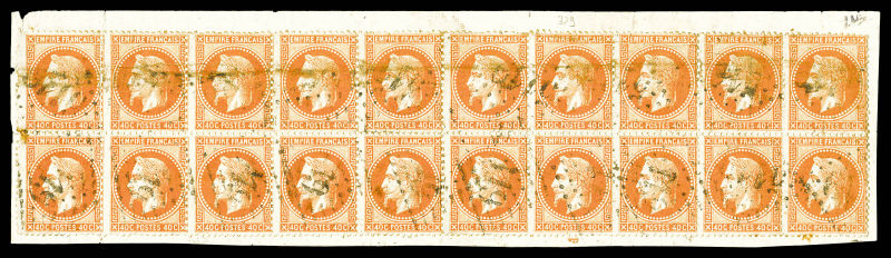 orange, bloc de 20 exemplaires obl GC 5119 LE CAIRE sur son support, des défauts mais pièce spectaculaire. (certificat) Qualité: Oblitéré (Image)