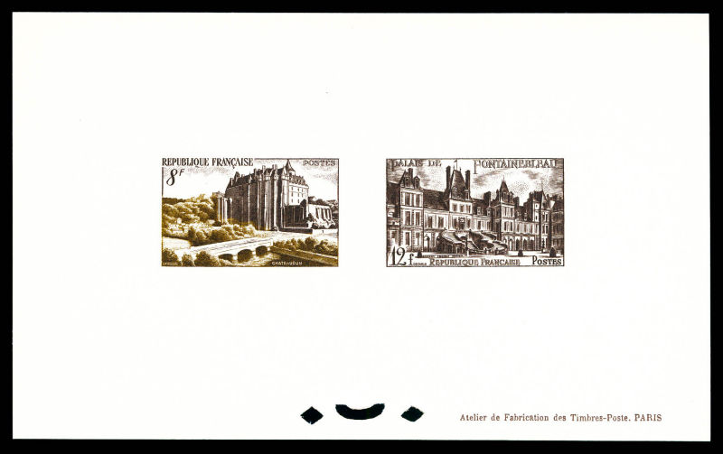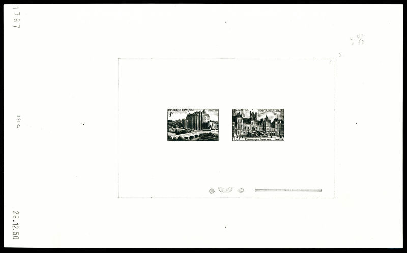 Château de Chateaudun et Château de Fontainebleau. Epreuve collective en noir sur grand feuillet daté du 26/12/50 et numéroté, RARETE (certificat) Qualité: (*)