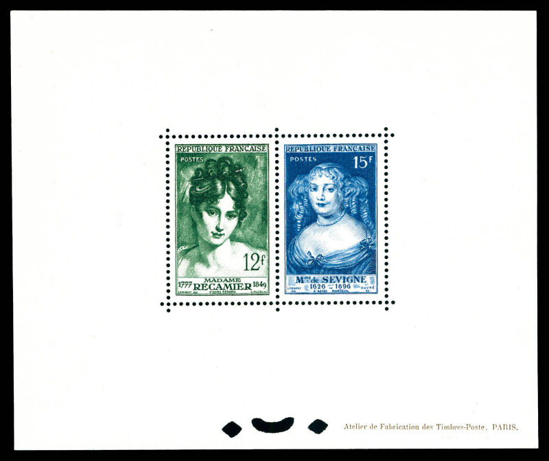 Blocs Spéciaux: Mme de Sévigné (15f) et Mme Récamier, tirage 16 exemplaires. RARE. SUP (certificat) Qualité: ** (Image)