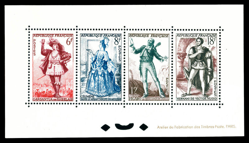 Spéciaux: N°943, 944, 956 et 957, Théatre Français de 1953, tirage 18 exemplaires. SUPERBE. R.R.R. (certificat) Qualité: ** (Image)