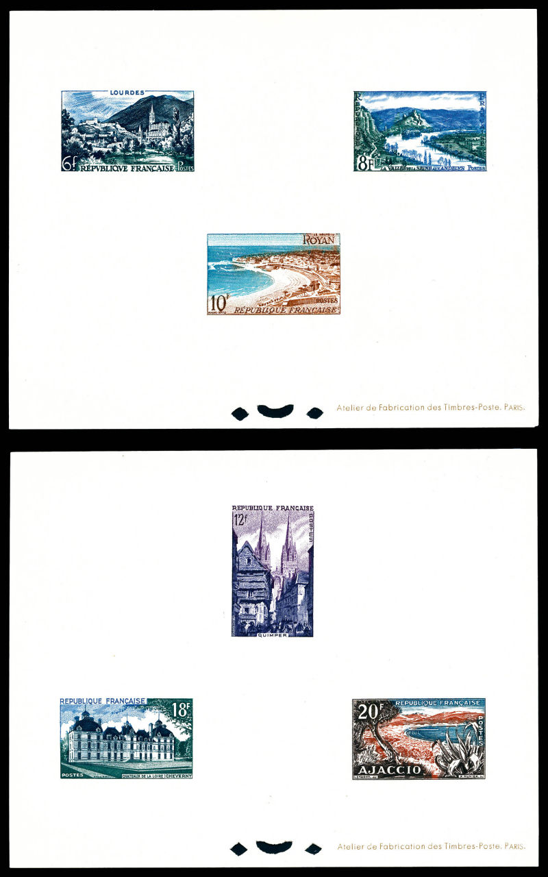 Série touristique de 1954 en 2 épreuve collectives. Tirage 25 exemplaires. SUP (certificat) Qualité: (*) Cote: 475 euros (Image)