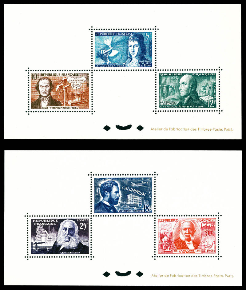 Inventeurs Célèbres: série complète en 2 épreuves collectives. Tirage 25 exemplaires. TTB Qualité: (*) Cote: 480 euros (Image)