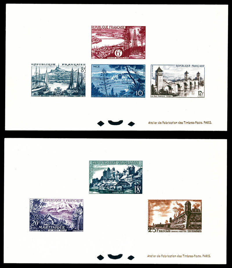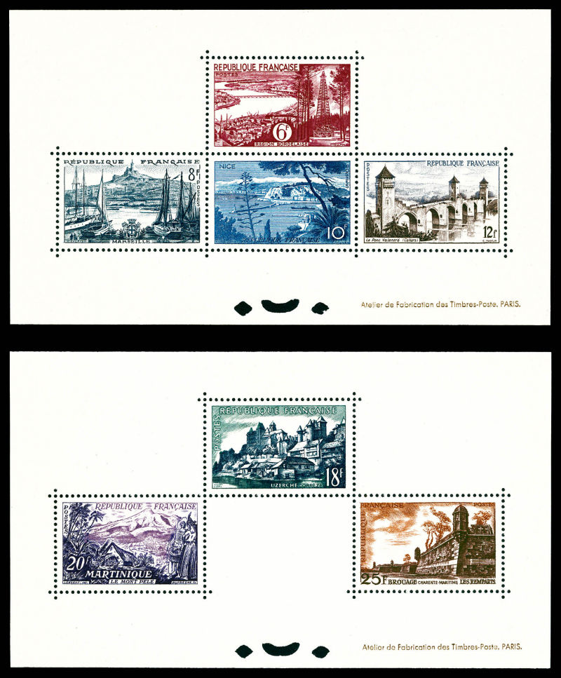 Blocs Spéciaux: Série Touristique de 1955 sur 2 feuillets, tirage 20 exemplaires. SUPERBE. R.R.R. (certificat) Qualité: ** (Image)