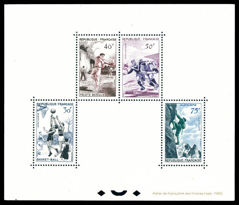Blocs Spéciaux: Série des Sports de 1956, tirage 22 exemplaires. SUP. R.R. (certificat) Qualité: ** (Image)