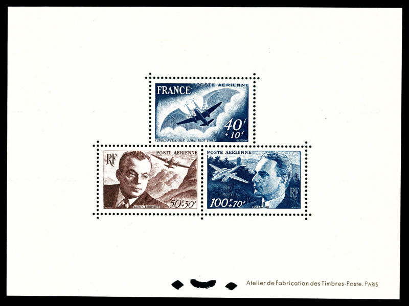 Blocs Spéciaux: Eole, St Exupéry et Dagnaux, tirage 15 exemplaires. SUPERBE. R.R. (certificat) Qualité: ** (Image)