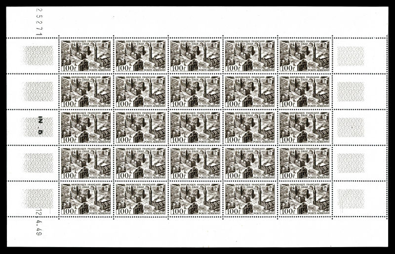 Série des villes de 1949 en feuilles complètes de 25 exemplaires, très jolie pièce (certificat) Qualité: ** Cote: 2750 euros (Image) (image2)